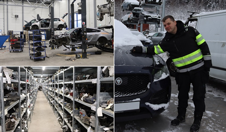 Årlig demonterer bedriften 3.500 biler: - Brukte deler er betydelig billigere enn nye deler. Vi snakker om en prisforskjell på opptil 70 %.